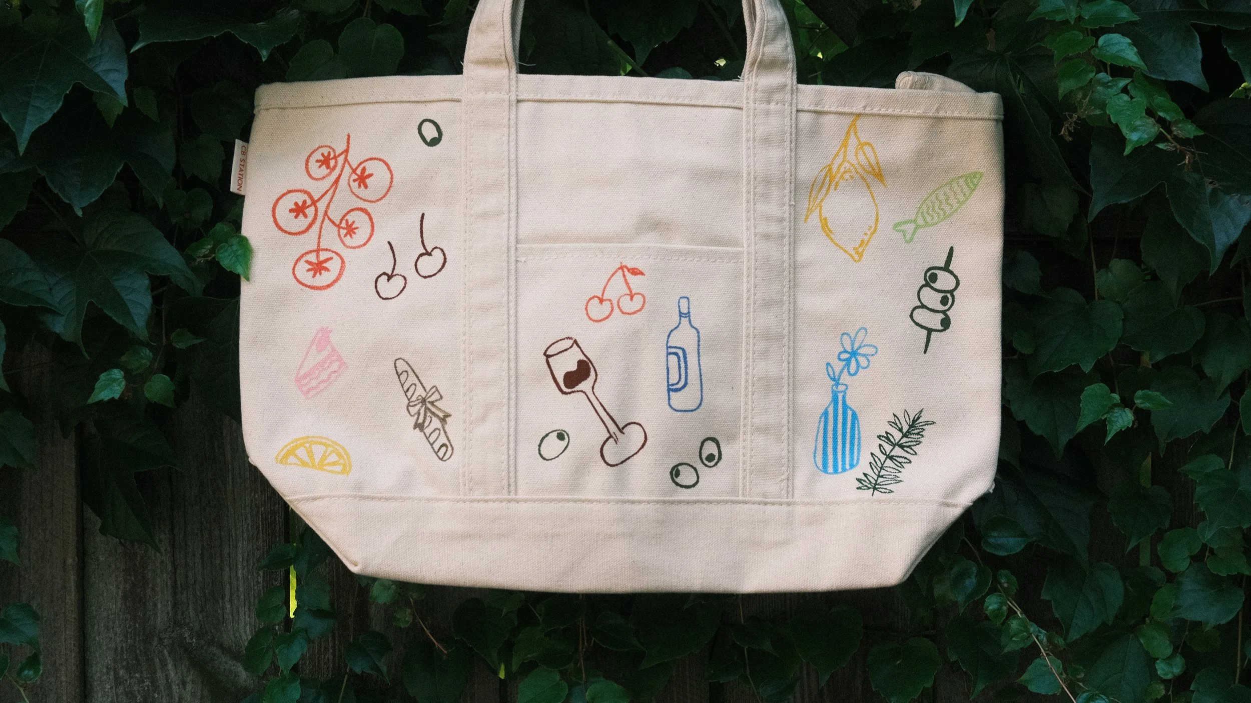 Elevate your style with this one-of-a-kind, cream-on-cream canvas tote, adorned with a distinctive hand-painted design. Perfect for art lovers and fashion-forward individuals alike.