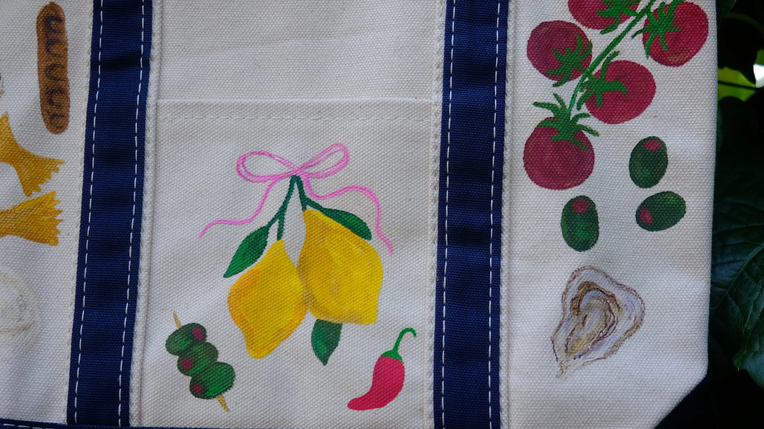 Elevate your style with this one-of-a-kind, navy-on-cream canvas tote, adorned with a distinctive hand-painted design. Perfect for art lovers and fashion-forward individuals alike.